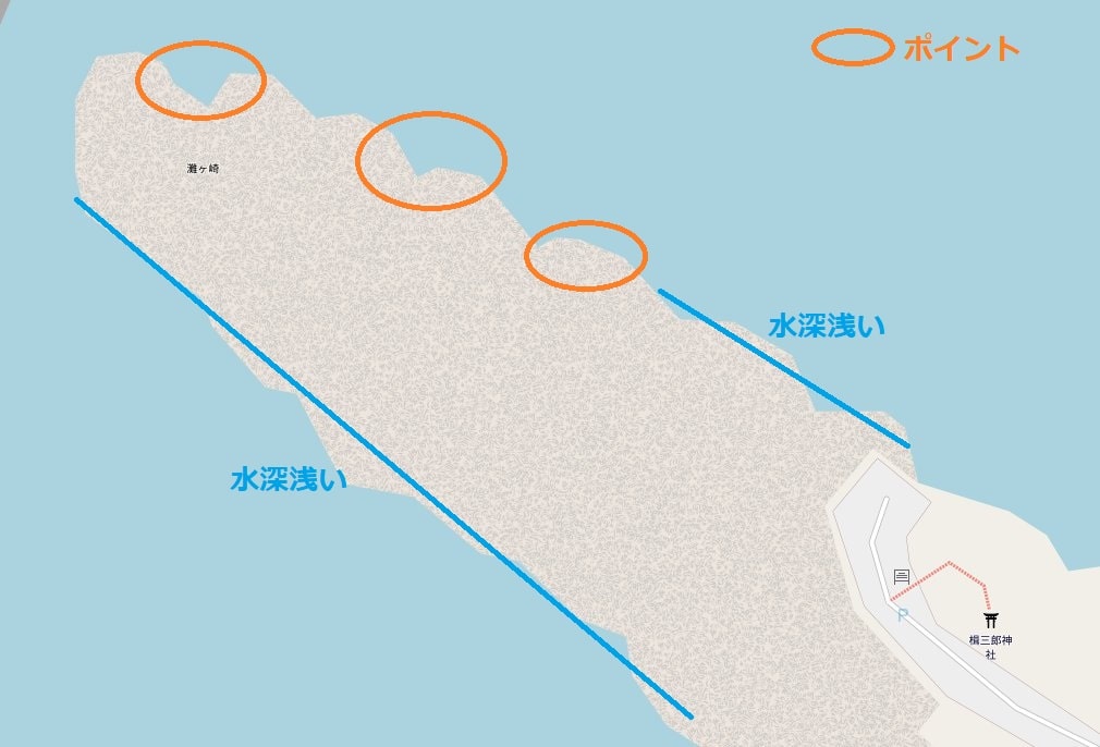 灘ヶ崎、長津呂崎~四畳半、赤羽根崎に行く場合は、🅿①。