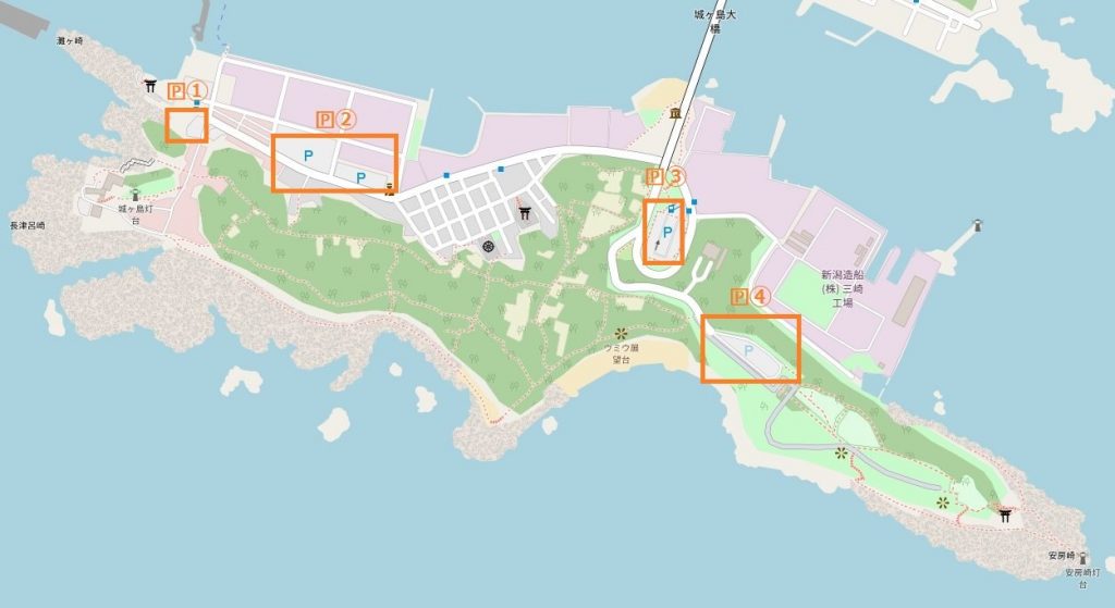 城ヶ島岸壁に行く場合は🅿①もしくは🅿②。